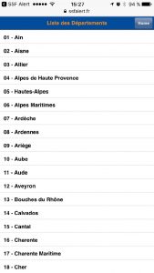 L’application est maintenant disponible même en mode avion. Pour mettre à jour l’application, il suffit de la lancer lorsque vous avez du réseau. Les nouvelles données sont alors automatiquement téléchargées et sauvegardées. Et pour éviter les longues tergiversations en plein milieu du Vercors ou bien à Corveissiat, SSFAlert peut vous géolocaliser et afficher les numéros du département dans lequel vous êtes. Mais pour cela il faudra un tout petit peu de réseau mobile.